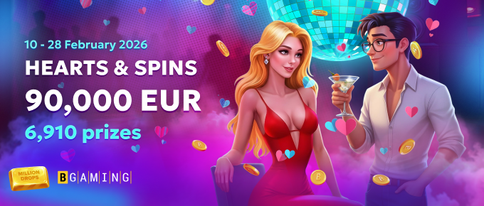 Gjør deg klar for Million Drops! Med Hearts & Spins på 100 deltakende spill og €90k i premier som venter på deg, er dette din perfekte sjanse til å teste lykken. Hver spinn gir mer spenning, større belønninger og uendelige muligheter til å klatre på topplisten. Ikke gå glipp av øyeblikket ditt til å spille stort og gjøre hver runde til en vinneropplevelse!